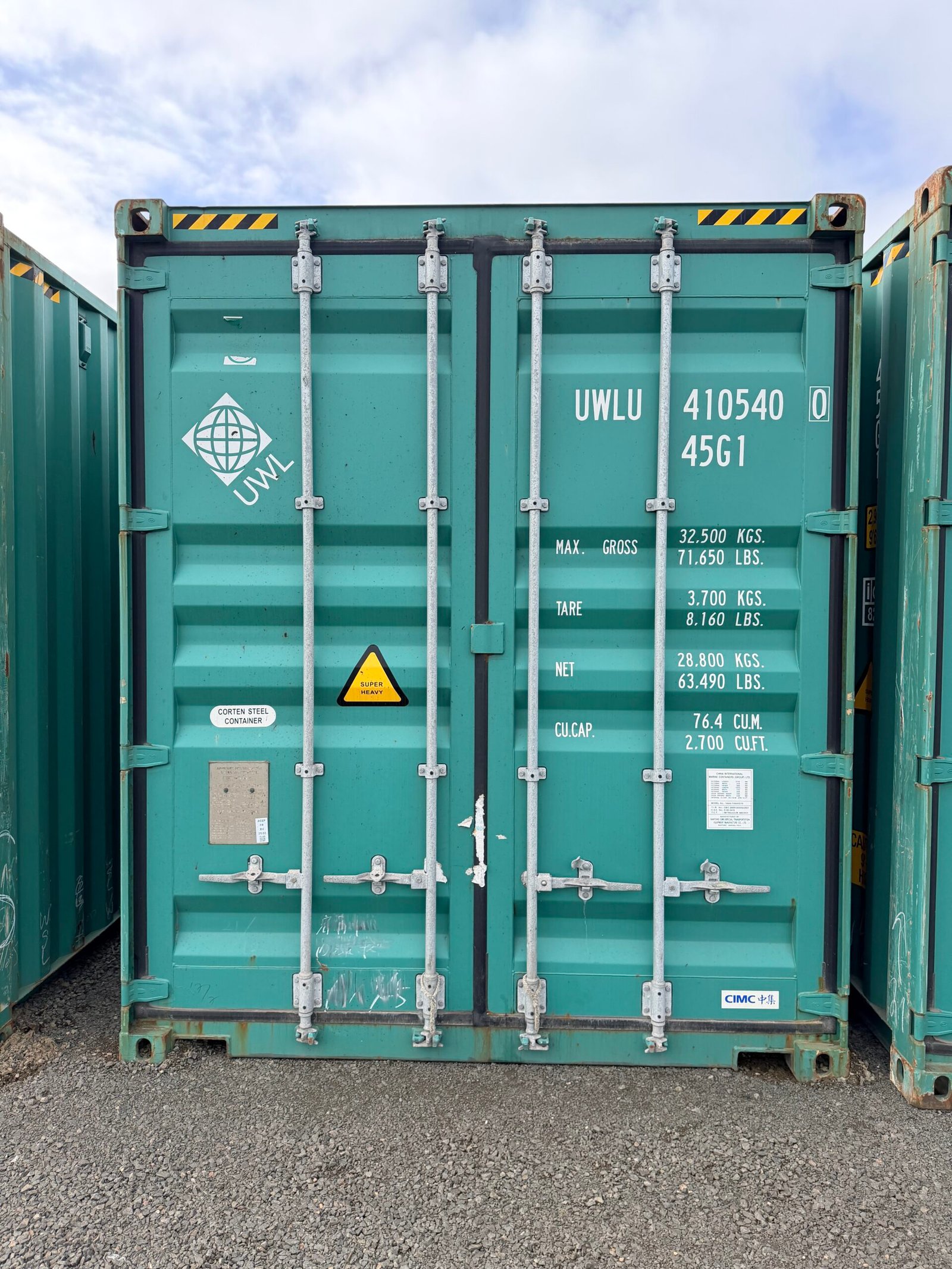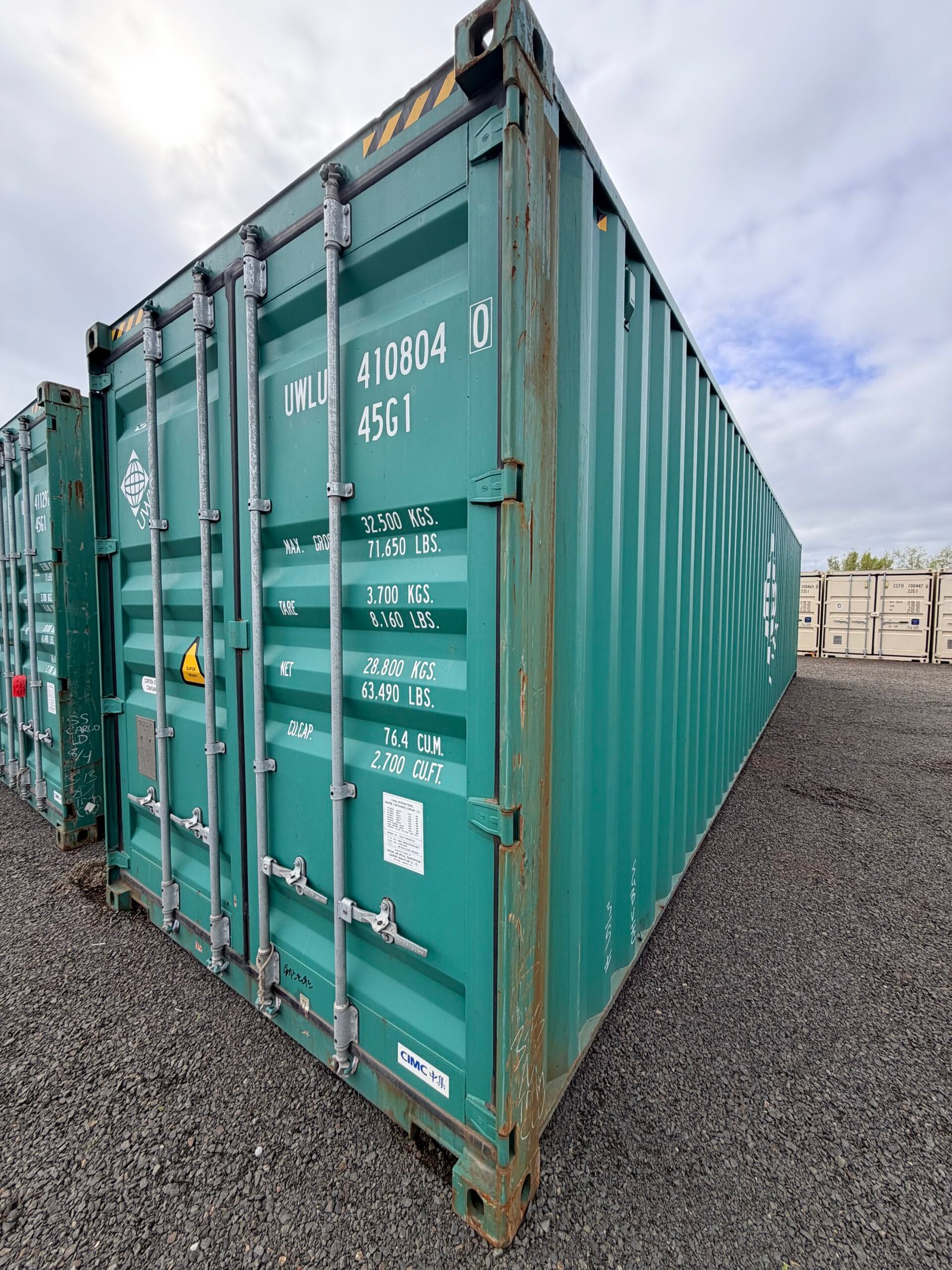 40-Foot Used High Cube Shipping Container – Green This 40-foot High Cube container offers extra interior space with a 9’6″ exterior height. It’s a great choice for oversized storage, workspace conversions, or custom modifications. The container features a clean, green factory finish that suits both industrial and commercial environments.